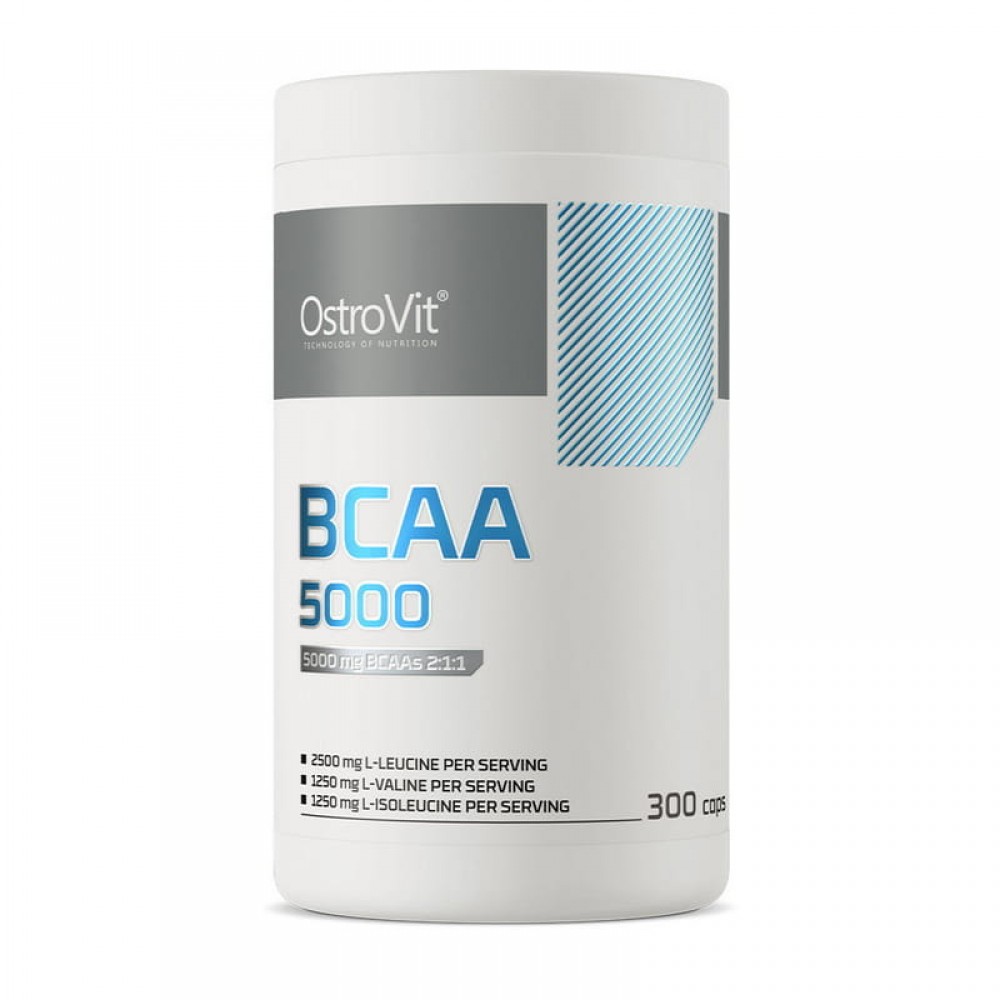 BCAA 1000 (300 caps) contains three main amino acids necessary for health, endurance, and muscle mass growth - leucine, isoleucine, and valine. The package contains 300 capsules, each containing 1000 mg of amino acids. The supplement is gluten and lactose-free and can be used by people with intolerance to these components.