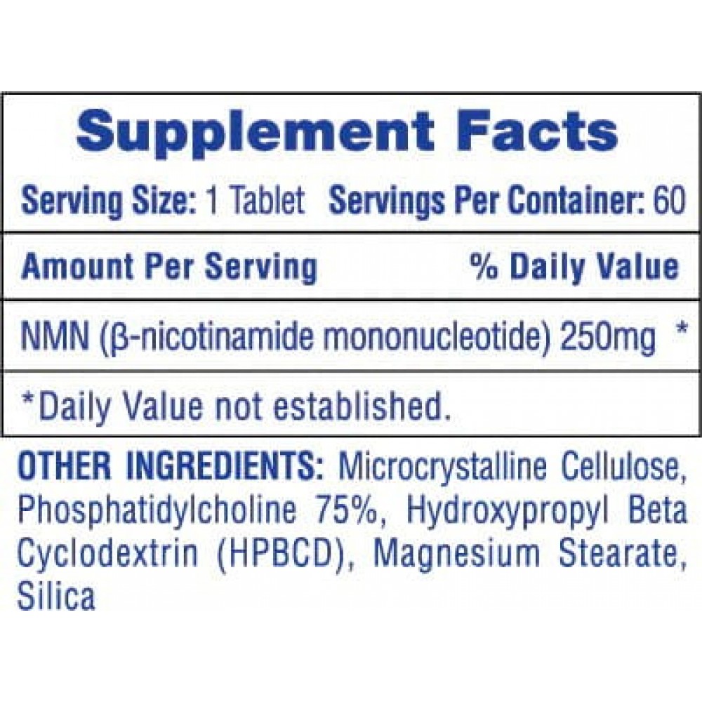 Рекомендована доза: 1 таблетка на день (250 мг NMN).