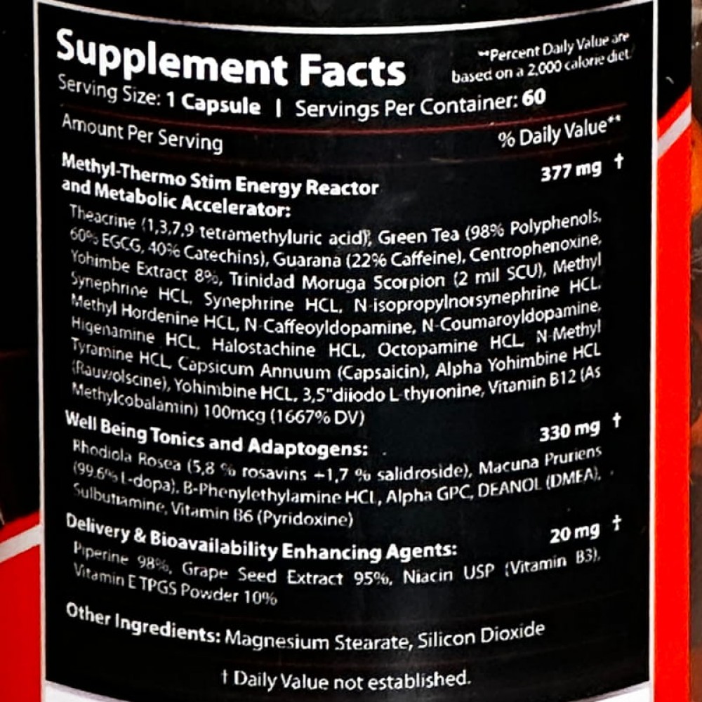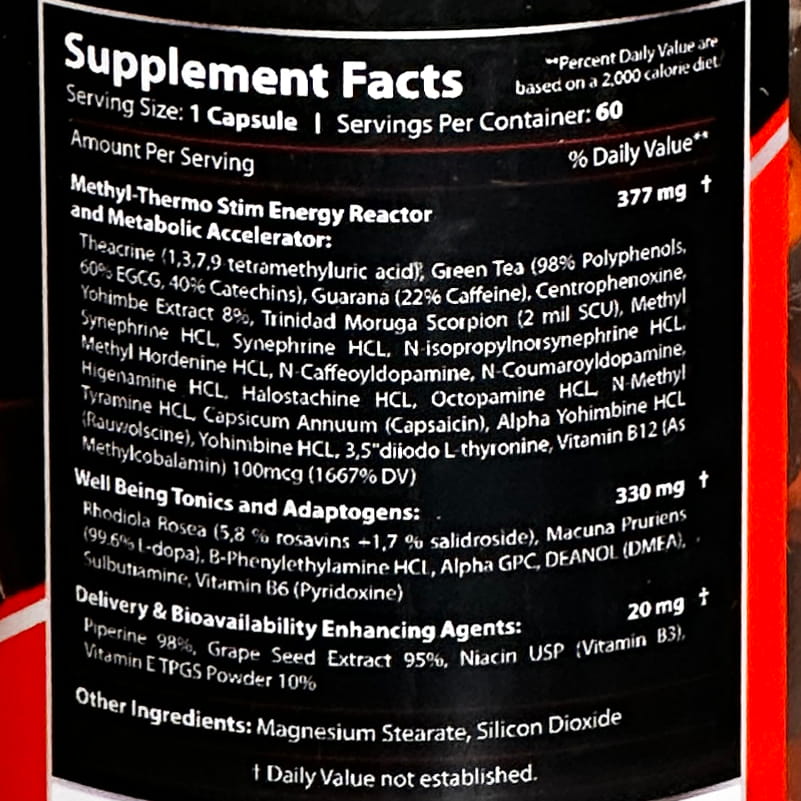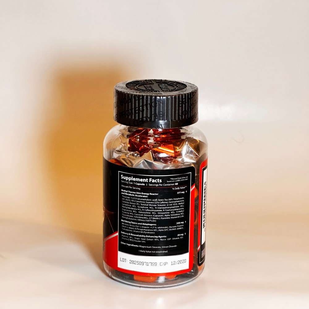 Thermal Pro Hardcore LTD від Revange Nutrition — це останнє покоління елітних жироспалювачів, спеціально створене для максимального термогенезу, знищення стійкого жиру в проблемних зонах та генерації чистої енергії без сильного удару по ЦНС. Формула поєднує три форми йохімбіну, теакрин, гуарану, синефрин, тринідадський скорпіон, L-DOPA, Alpha-GPC, гірський рододендрон та інші компоненти — це справжній «важкий артилерійський» комплекс для досвідчених користувачів, які хочуть результатів на межі можливого.